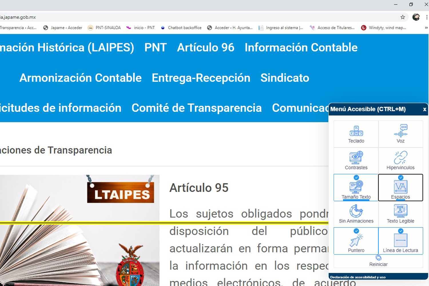 Este nuevo sistema trae consigo una serie de funciones que se pueden activar de acuerdo a las necesidades de cada persona, solo basta ingresar a nuestro sitio web y en la parte inferior derecha se encontrara ubicado el botón de acceso rápido, este se podrá abrir y cerrar haciendo clic en la imagen o bien combinando las teclas Ctrl+M, así mismo tiene movilidad junto con la barra de arrastre sin que se pueda perder de vista al momento de subir o bajar en la página.