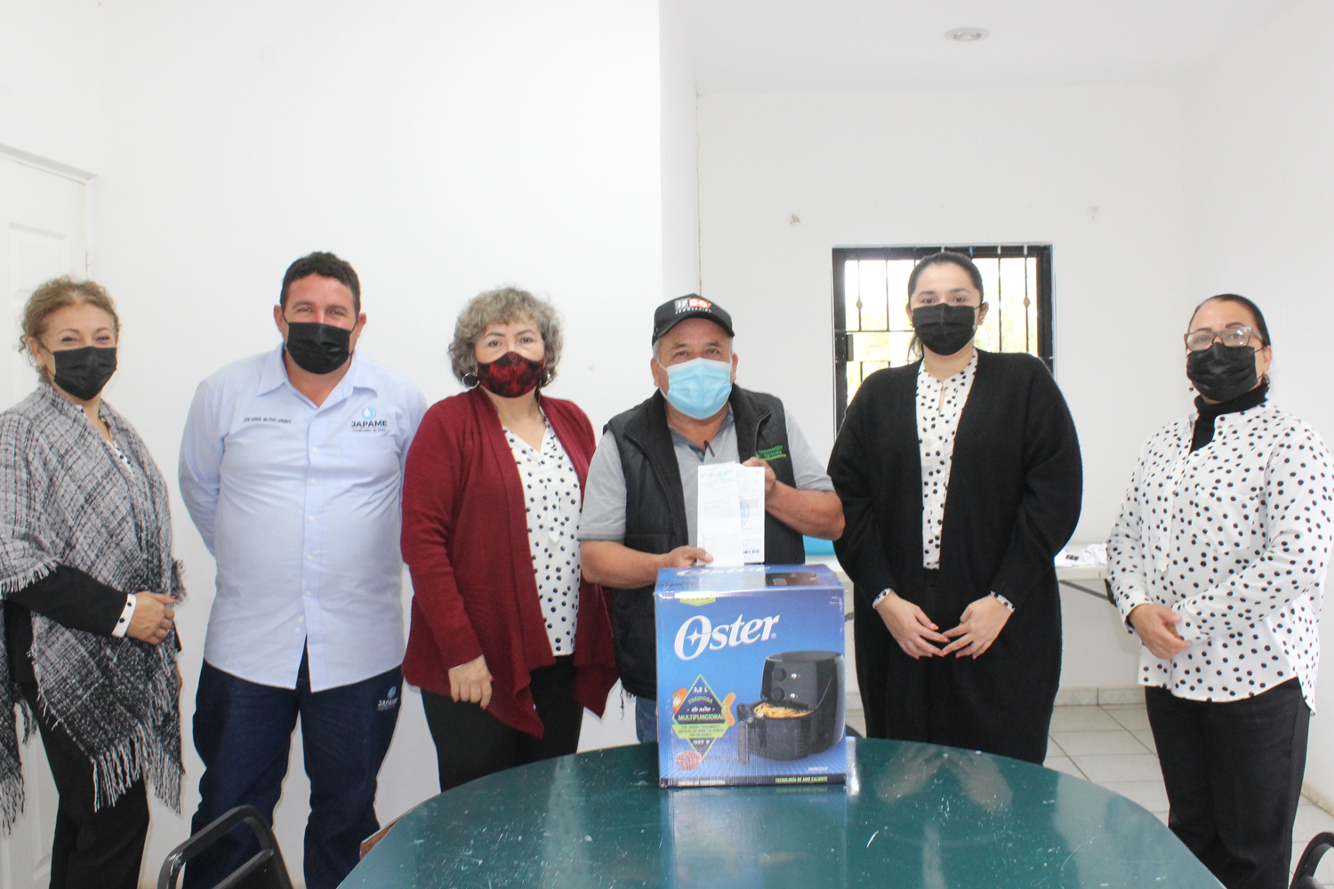 Los ganadores del sorteo usuario cumplido fueron el señor Francisco Jiménez del Fraccionamiento Santa Cruz quien recibió una freidora de aire Oster, mientras que el señor Jesus Ponce Millán de la comunidad de Ceuta, recibió una licuadora Oster por parte del personal que aquí labora.