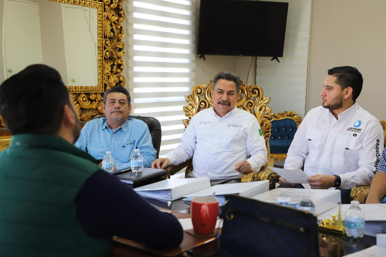 La Cruz, Elota, Sinaloa.- el día de ayer el presidente municipal, Richard Millán en compañía del gerente de JAPAME, el maestro Ulices Daniel González sostuvieron una reunion con el director del Programa de Agua Potable de la CONAGUA, el Ing. Ramón Alberto Gutiérrez y Juan Carlos Ruiz, jefe del departamento de estadística de CEAPAS, donde se abordaron temas de gran importancia para el desarrollo del municipio.
