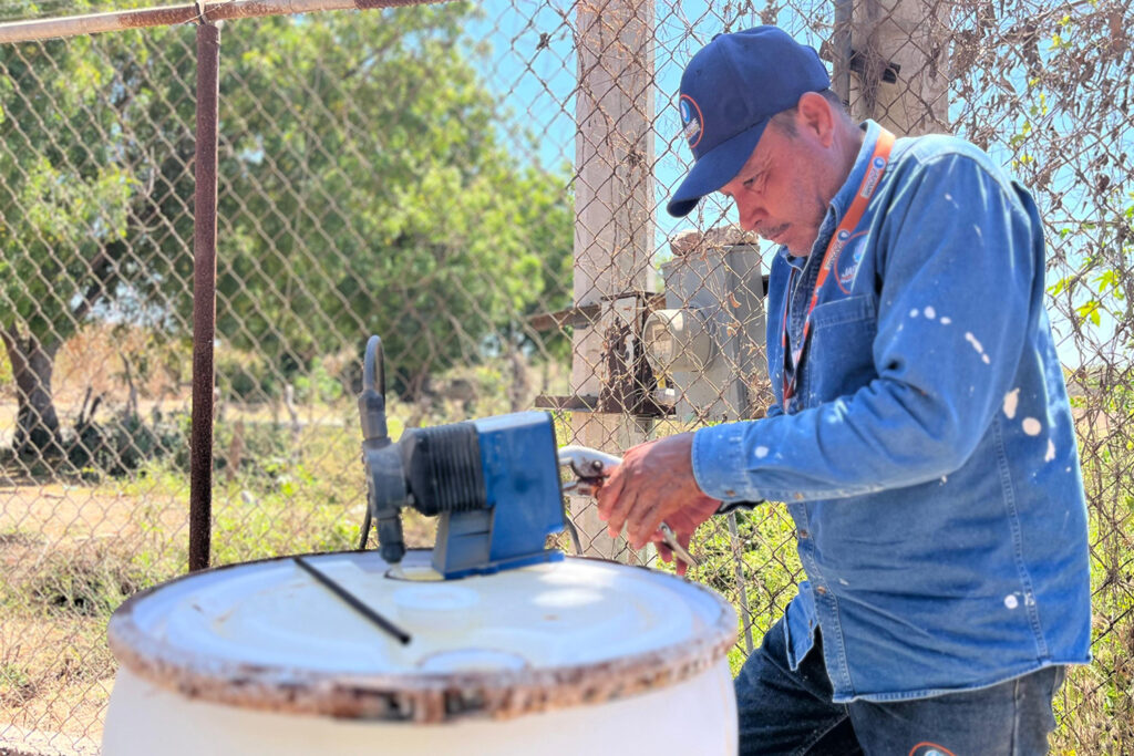 Conscientes de que la calidad del agua es un factor fundamental para la salud de todos los Elotenses, el equipo del área de Cloración mantiene una estricta supervisión diaria de los sistemas de dosificación de cloro, ubicados tanto en la cabecera municipal como en las distintas comunidades rurales. Cada día, el personal especializado realiza recorridos de supervisión por las diferentes rutas, verificando que los equipos se encuentren en óptimo estado, realizando mantenimiento preventivo a las bombas dosificadoras y asegurando el oportuno relleno de los contenedores de cloro.