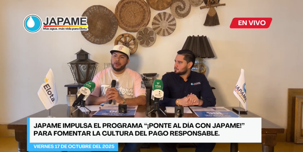La Junta Municipal de Agua Potable y Alcantarillado del Municipio de Elota (JAPAME) llevó a cabo este viernes 17 de octubre una rueda de prensa para la presentación oficial del programa “¡Ponte al día con JAPAME!”, encabezada por el Presidente Municipal Richard Millán Vázquez y el Gerente General de JAPAME, Mtro. Ulices Daniel González Beltrán.